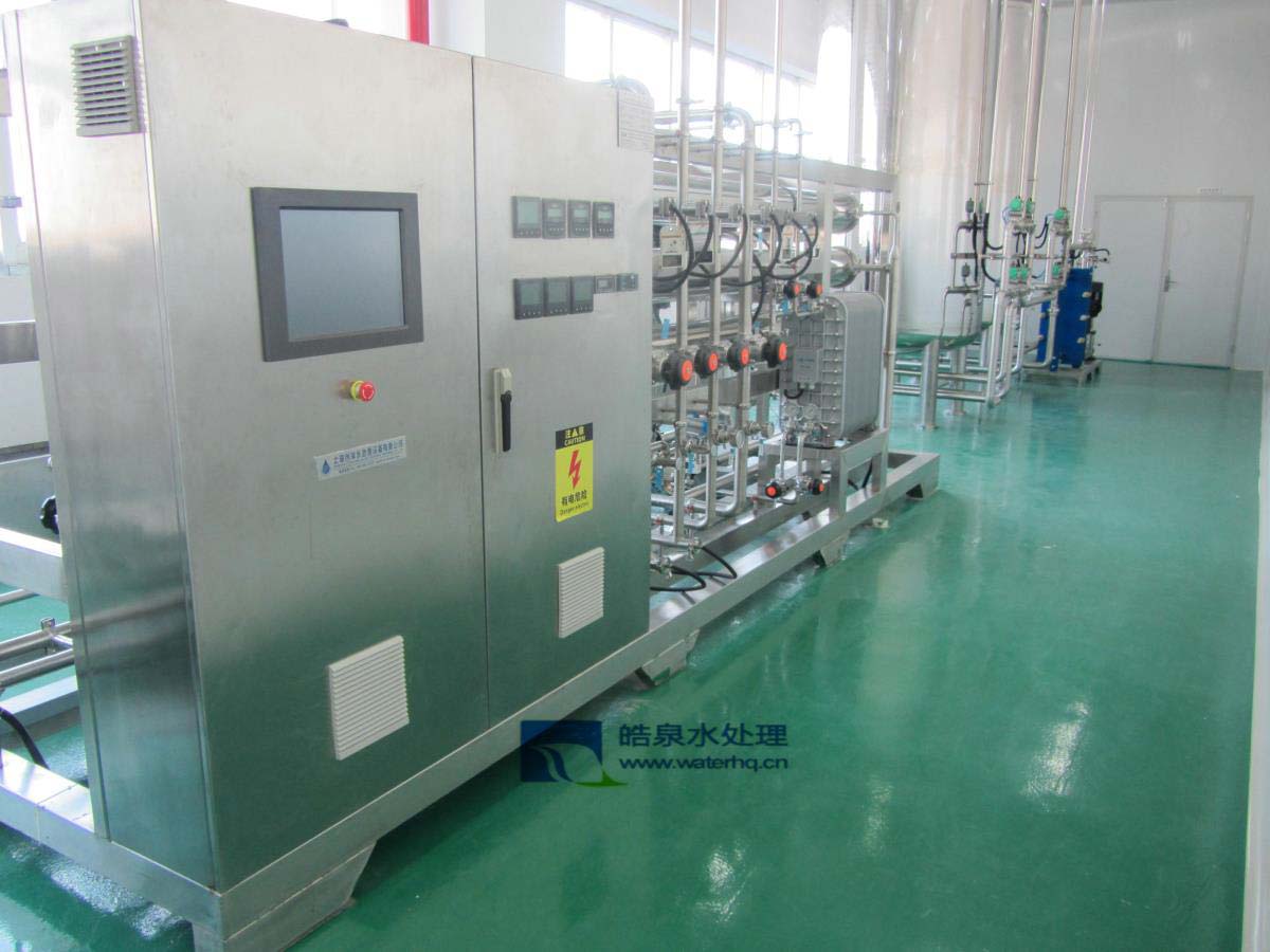 采用預(yù)處理、反滲透技術(shù)、超純化處理以及后級處理等方法,將水中的導(dǎo)電介質(zhì)幾乎完全去除,又將水中不離解的膠體物質(zhì)、氣體及有機(jī)物均去除至很低程度的水處理設(shè)備。