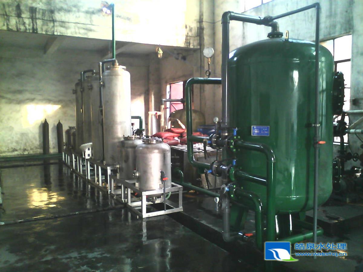 該系統(tǒng)采用工藝流程為:原水→石英砂過濾器→軟水器→水箱
